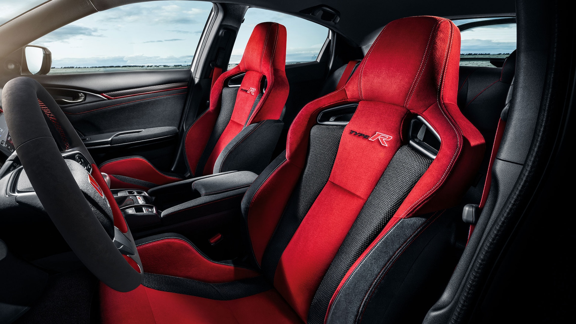 Dueño de un estilo llamativo, una aerodinámica extremadamente funcional y una cabina inspirada en los autos de carrera, el Civic Type R es una poderosa fiera sobre las vías. Su zona frontal es agresiva. La H roja, el símbolo exclusivo del legado de la marca en el mundo de las carreras.